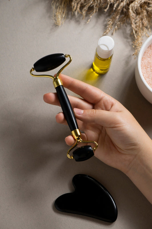2 stks/zwarte multifunctionele hars gezichts-en oogmassagerollerset